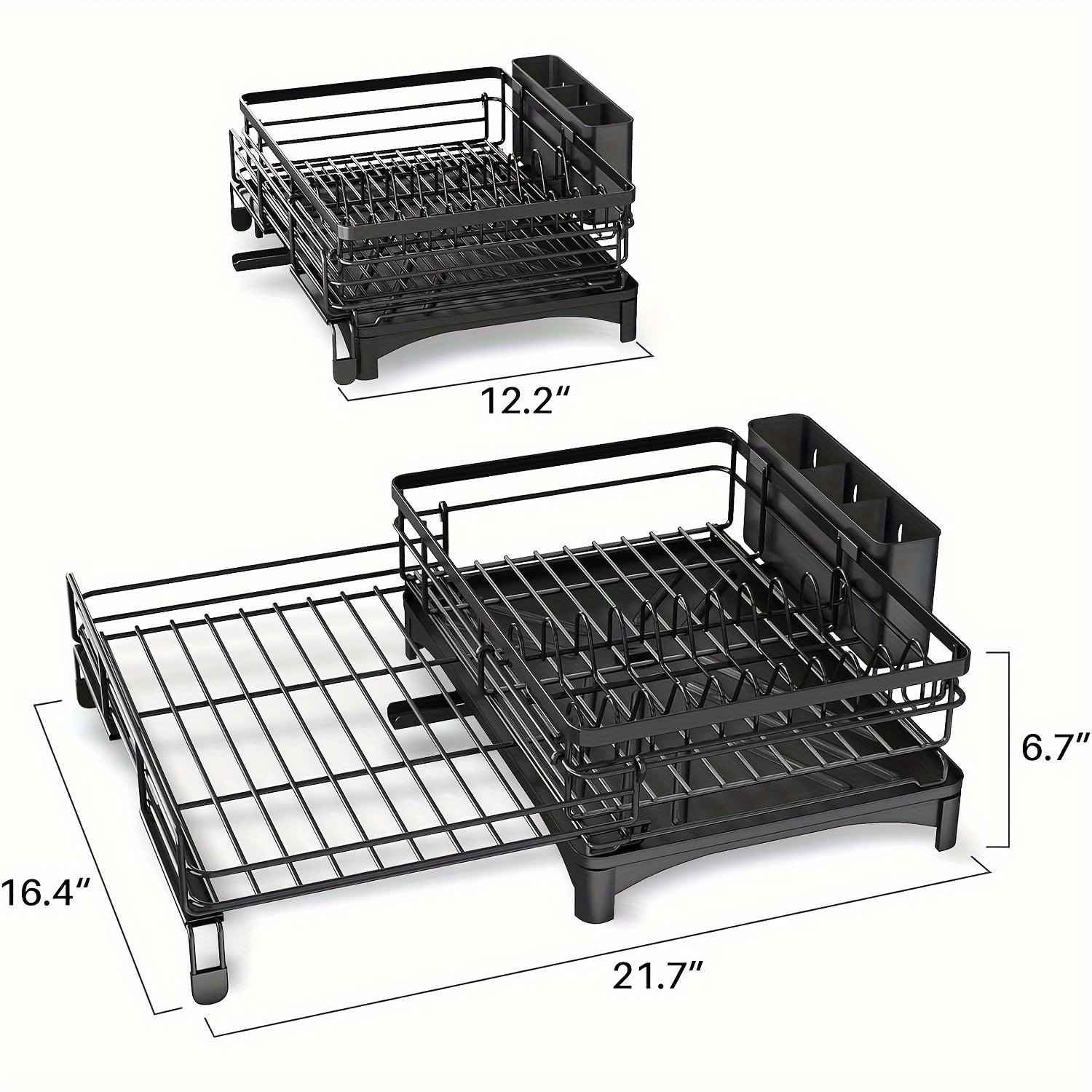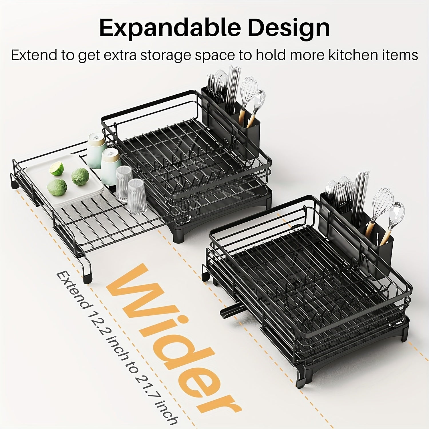 Say goodbye to countertop clutter with the CleverDrainer Expandable 2-in-1 Dish Drying Rack—your new kitchen organization hero! Designed to sit neatly over your sink or on the counter, this space-saving dish rack extends from 12.2" to 21.7", offering double the storage for up to 10 plates, 12 bowls, 6 glasses, and even a pan. It includes a 3-compartment utensil holder and guard rails to keep everything secure. Whether you’re tackling a big family meal cleanup or just daily dishes, this dish rack keeps your kitchen looking clean and tidy without taking up too much room.