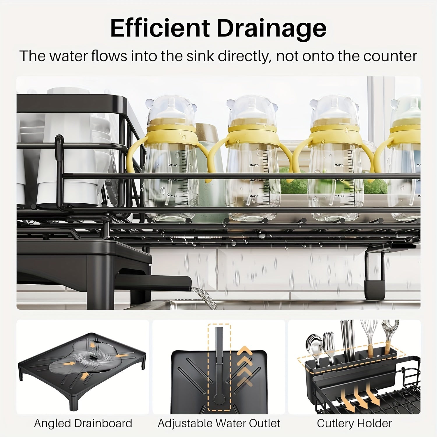 Built with rustproof stainless steel and an anti-fingerprint black coating, the CleverDrainer not only looks sleek but lasts long. The smart angled drip tray and 360° rotatable water spout ensure that water drains directly into the sink—not onto your counter. Adjustable feet and anti-slip attachments keep it steady, even on self-rimming sinks. Easy to install with no tools required, this drying rack is perfect for small kitchens, apartments, and anyone looking to maximize space. Enjoy a neater, dryer, and more organized kitchen today with the CleverDrainer dish drying rack.