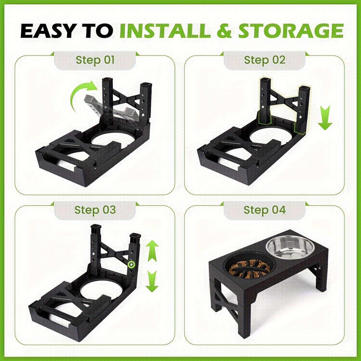 Practical and easy to use, the NIUBYA Elevated Bowls are foldable and tool-free to assemble, making storage and setup effortless. The detachable stainless steel bowls and slow feeder bowl are dishwasher-safe, providing hassle-free cleaning and fresh meals for your pup every day. Whether you have a small, medium, or large breed, this adjustable dog feeding station is the perfect way to support your pet’s health and comfort. Upgrade your pet’s mealtime with NIUBYA Elevated Bowls—where style meets function for a happier, healthier pup!