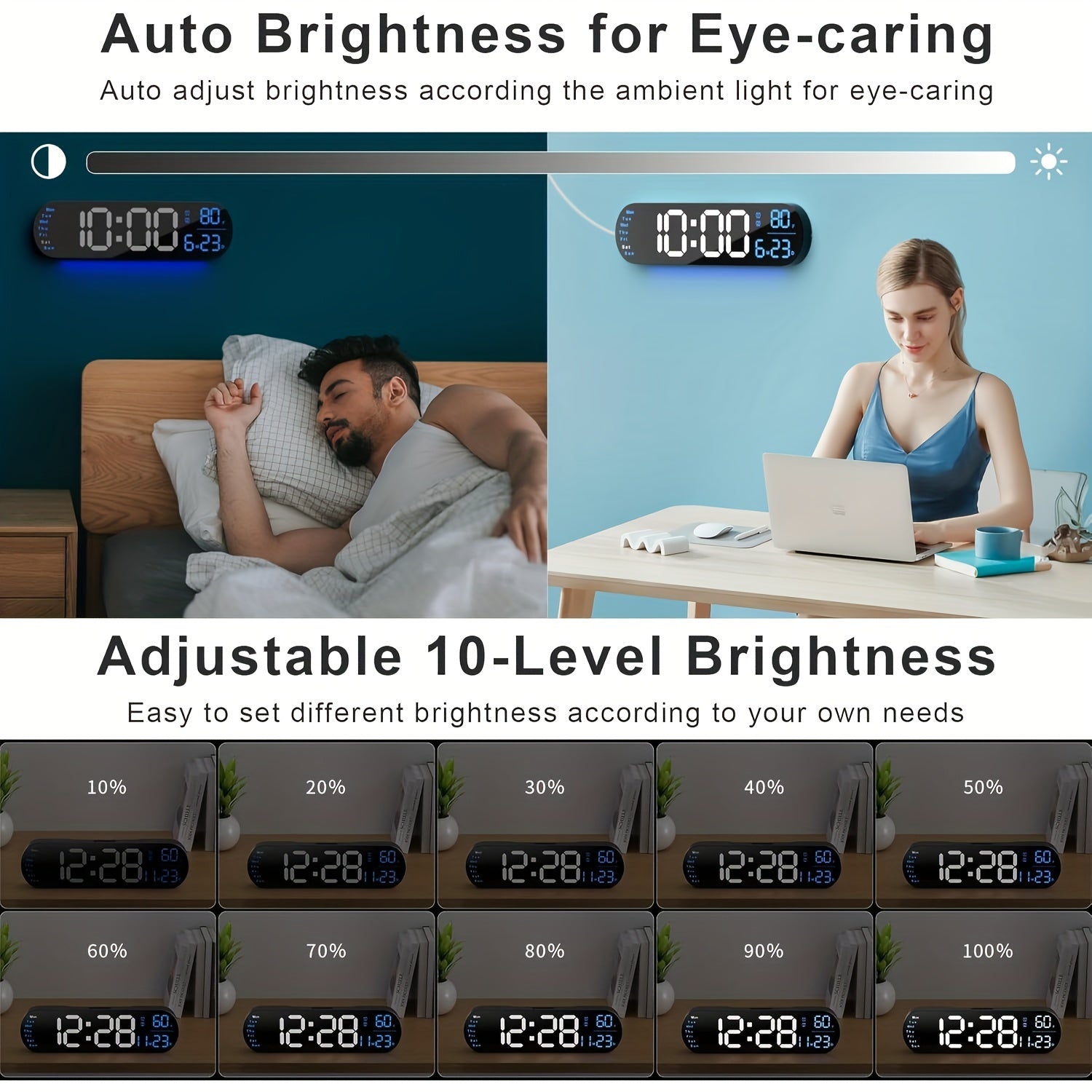 The TimeGlow Wall Clock is packed with smart features to make your life easier. Adjust the brightness manually or let the automatic dimming sensor do the work for you, ensuring comfortable visibility throughout the day. With dual alarms, a countdown timer, and 10 brightness levels, this clock is as versatile as it is stylish. It even has a memory function to keep your settings intact during a power outage. USB-powered and easy to mount, it’s a perfect addition to any home or office and makes an excellent gift for family, friends, or loved ones. Upgrade your space with the TimeGlow Digital Wall Clock for a functional, stylish, and customizable solution to timekeeping.