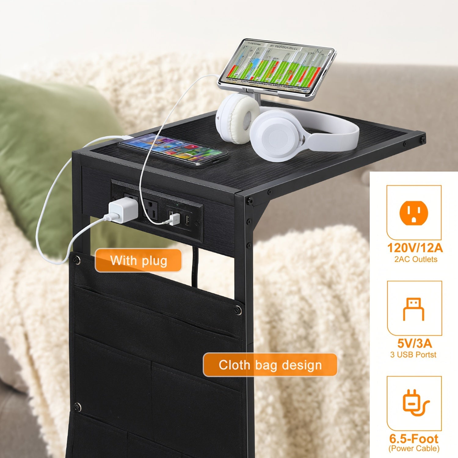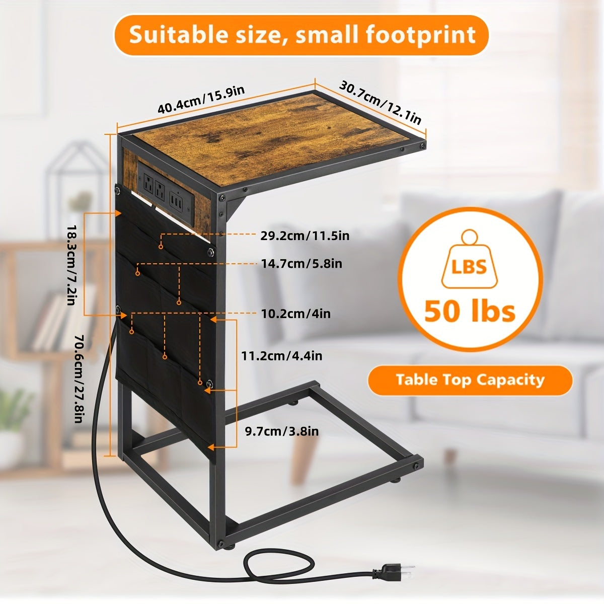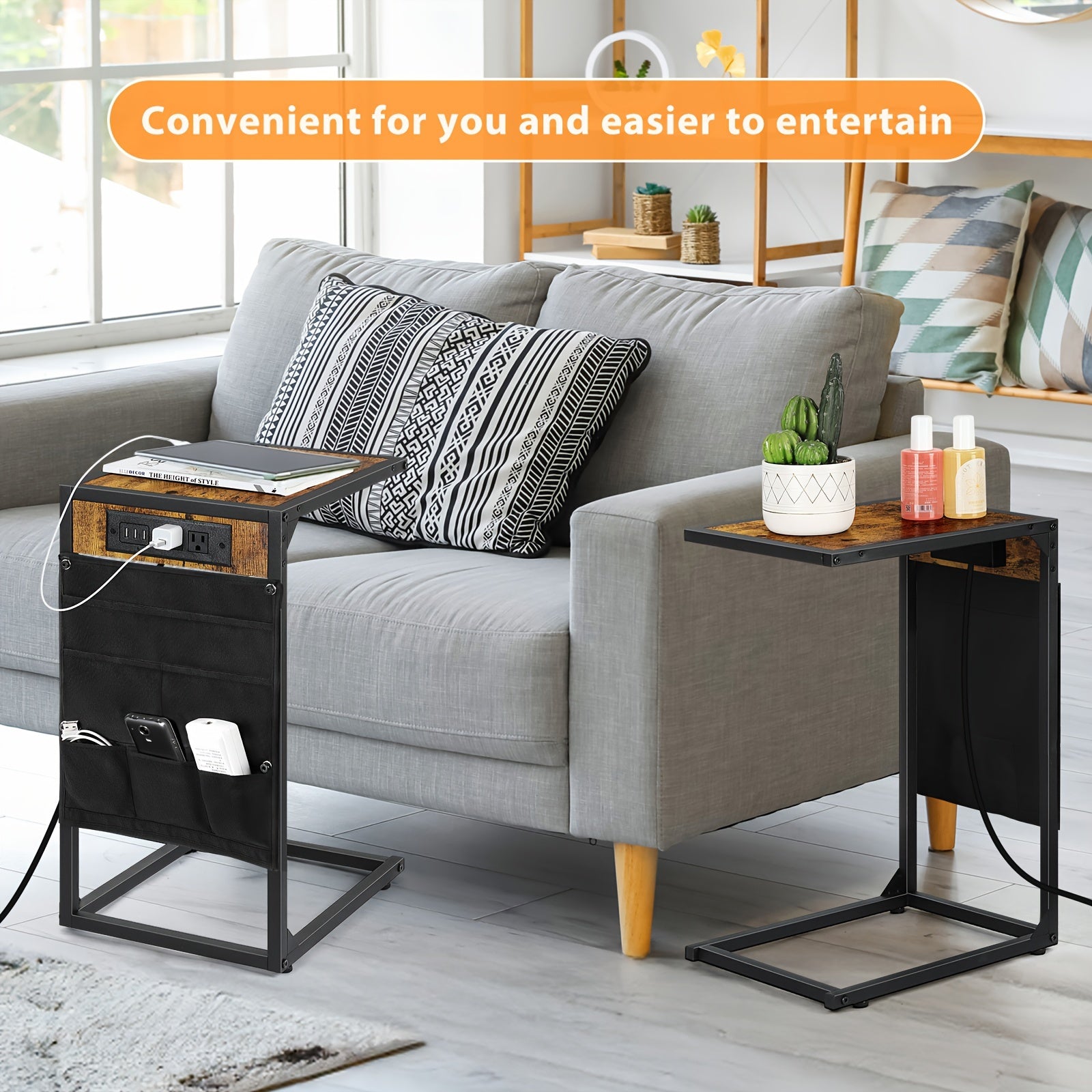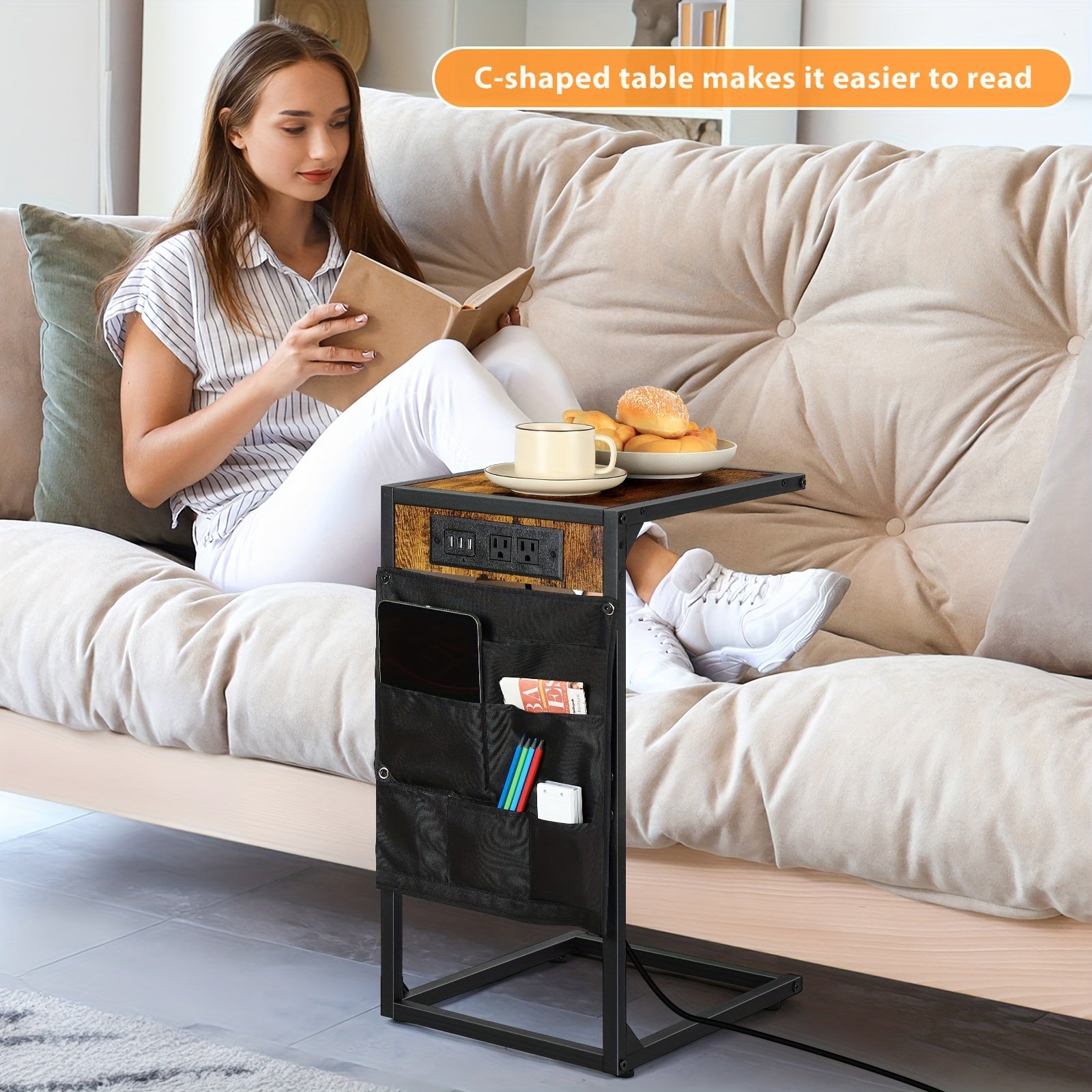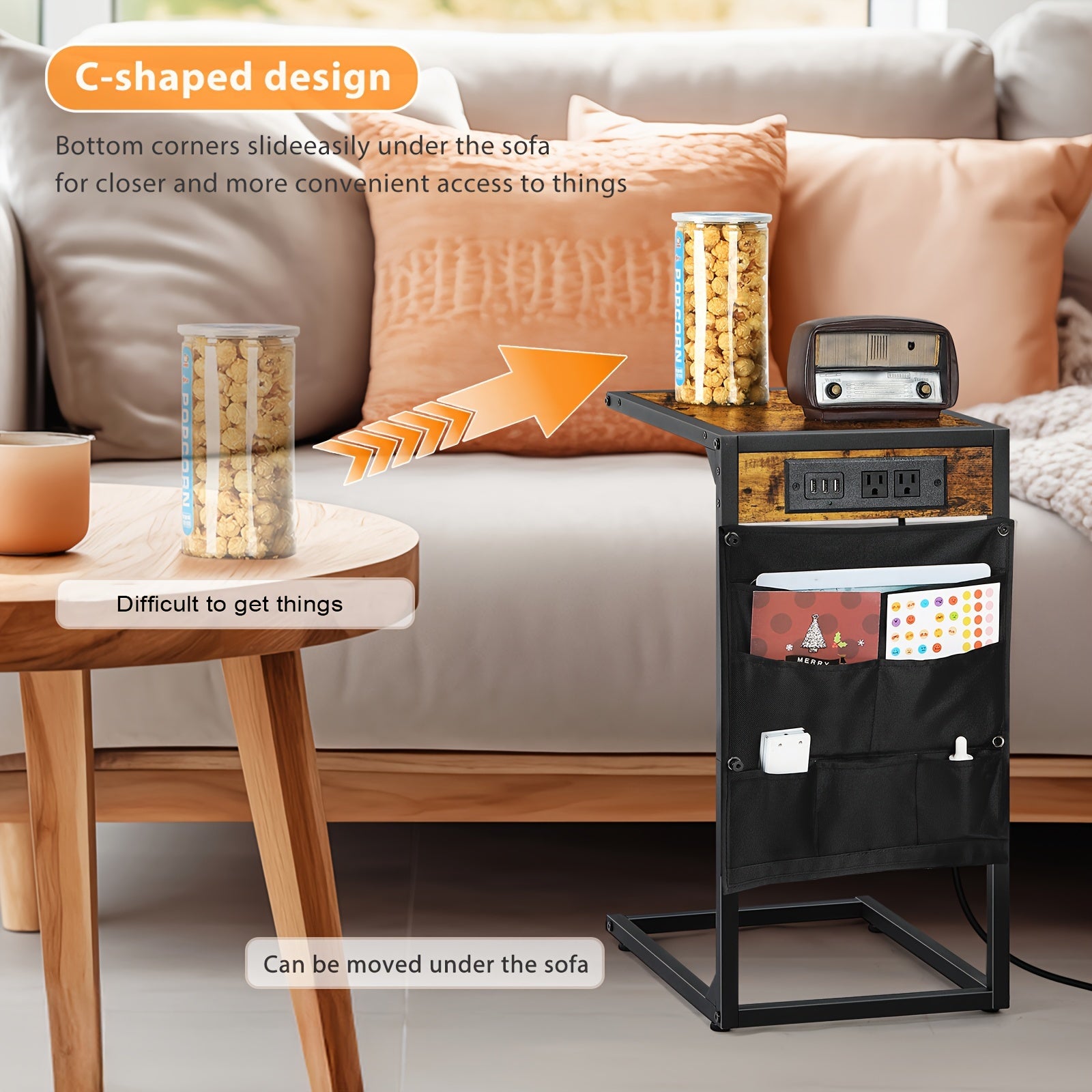 Transform your living space with the TUENORT ModernHub C-Shaped End Table, a stylish and functional piece designed to make your life easier. Perfect for small spaces, this versatile table slides effortlessly under your sofa or bed, providing an ideal spot to place drinks, snacks, or work materials. With a spacious wooden tabletop and convenient side pockets, you can organize everything from books and magazines to chargers and remote controls. Plus, the large storage capacity ensures that everything you need is always within reach. Whether you're relaxing, reading, or working, this table blends practicality and style to enhance your daily routine.