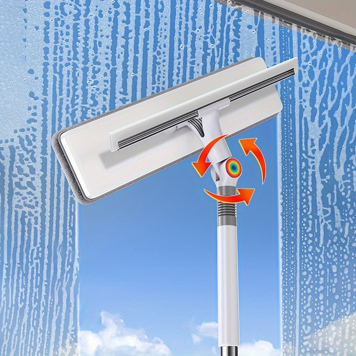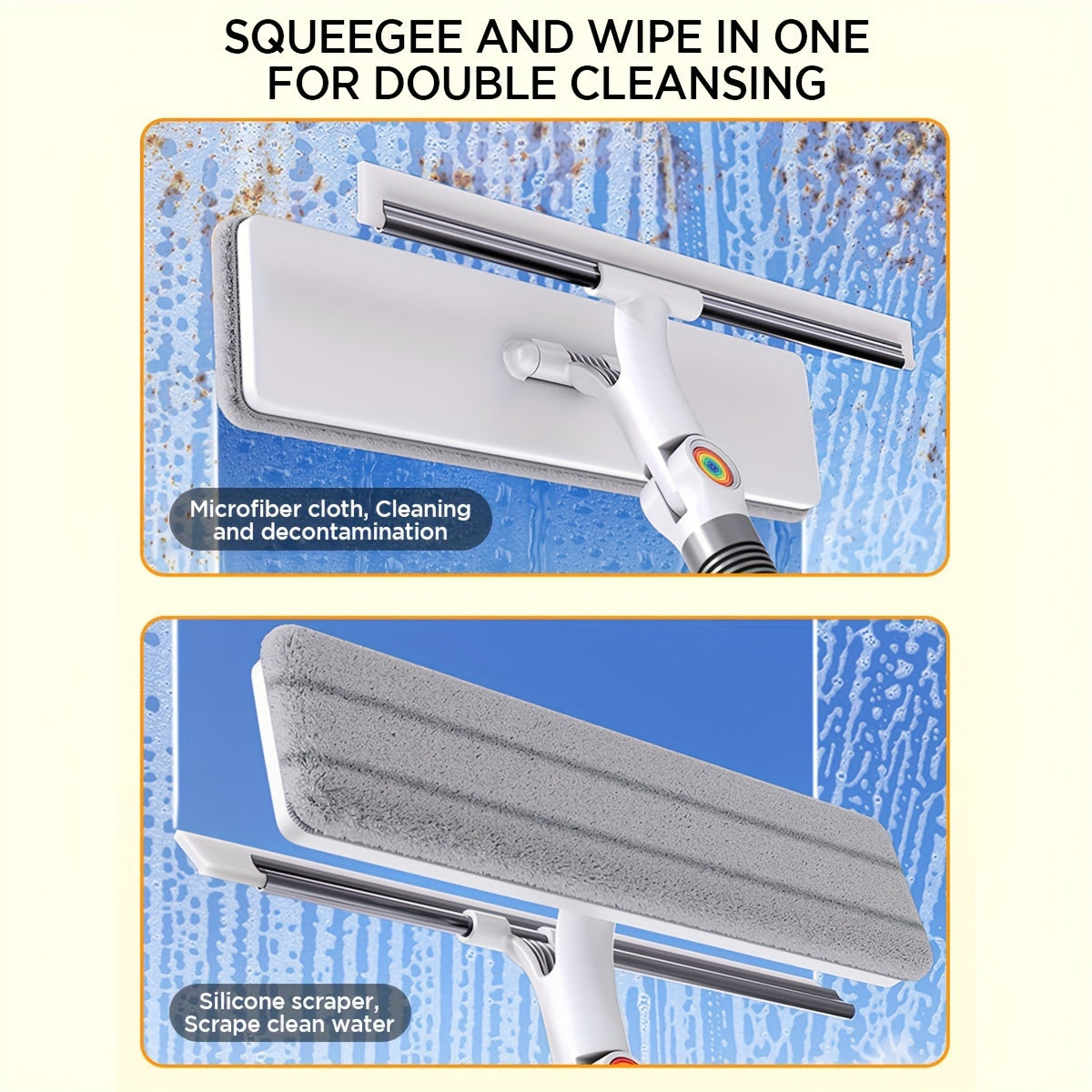 Introducing the TwistClean 2-in-1 Window Squeegee, your all-in-one solution for sparkling clean windows and surfaces—without the ladder or hassle. With a smart combination of a microfiber scrubber and a streak-free rubber squeegee, this professional window cleaner effortlessly removes dust, dirt, and water in one smooth motion. The bendable, rotatable head locks securely at various angles, making it easy to clean tricky corners, curved glass, or high spots. Whether you're tackling indoor mirrors, outdoor windows, car windshields, or shower doors, this multi-purpose window cleaning tool gets the job done quickly and safely.