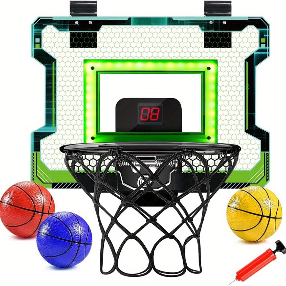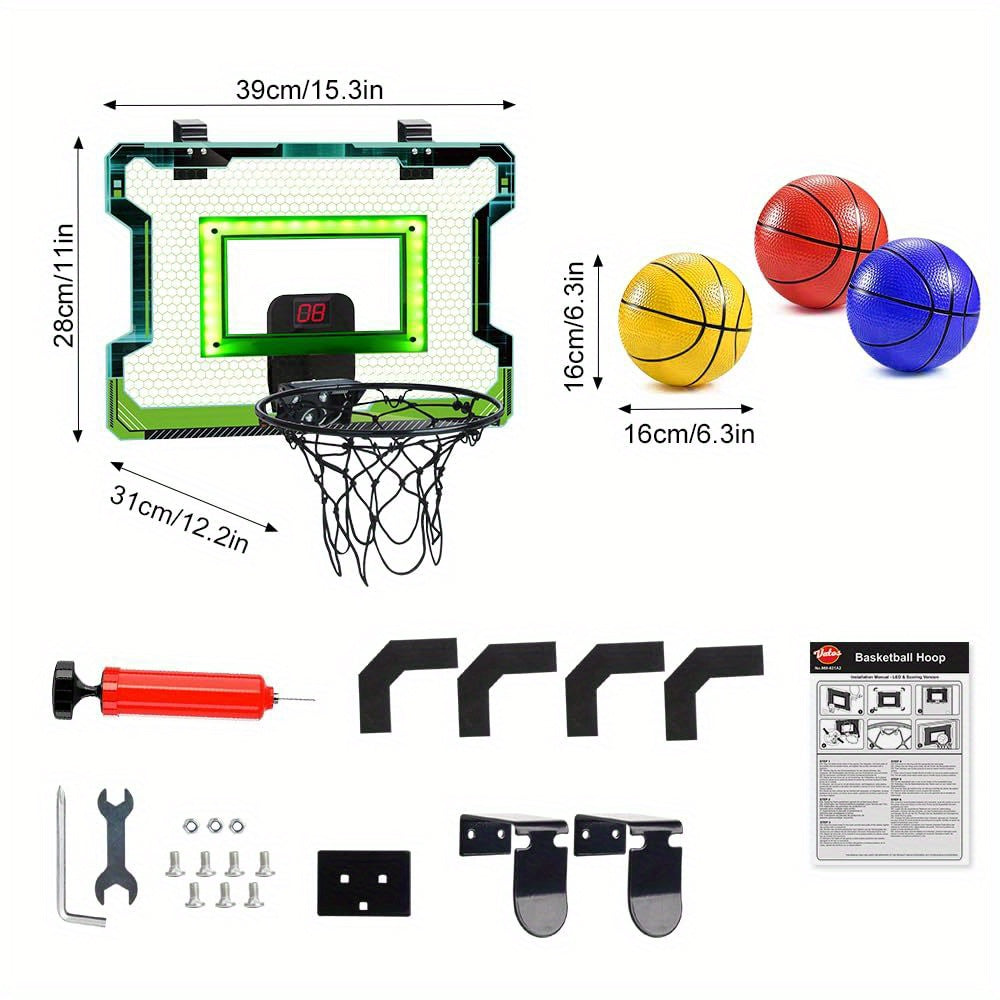 Perfect for indoor play and family fun, the VATOS DunkZone set includes 3 colorful basketballs and an air pump, so you're ready to play right out of the box. It fits securely on most standard doors and comes with all necessary tools and accessories for quick setup. This indoor basketball set for kids and adults encourages physical activity, improves focus, and keeps screen time in check. Whether you're buying it for a birthday, holiday, or just because, this mini basketball hoop with electronic scoring is the perfect gift for basketball fans of all ages.