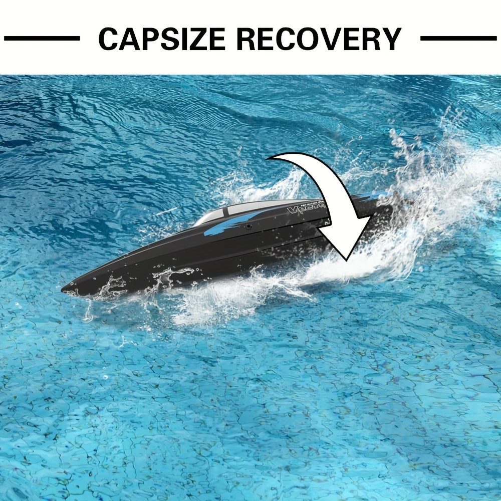 Experience the thrill of high-speed water racing with the VOLANTEXRC WaveBlazer! This fast RC boat reaches speeds of up to 20 mph, delivering an exciting and adrenaline-pumping ride across pools, lakes, and rivers. Engineered with a 2.4GHz remote control system, it offers precise handling and a 120-meter control range, ensuring smooth maneuverability even at high speeds. Its anti-flip hull design and self-righting mechanism keep the boat steady and upright, so you can enjoy non-stop action without worrying about capsizing. Plus, the reverse-functional ESC lets you navigate tricky waters effortlessly, making it perfect for beginners and experienced racers alike.