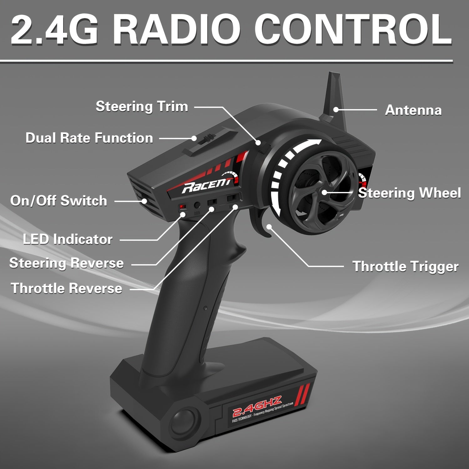- Additional Features: Reverse-functional ESC, intuitive throttle trigger, and steering wheel control